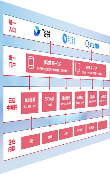 对协作平台提供支持服务,,,,支持企业应用与协作平台对接,,,,包含组织同步、、、消息集成、、、待办集成等。。支持目前主流的协作平台:钉钉、、、企微和飞书。。